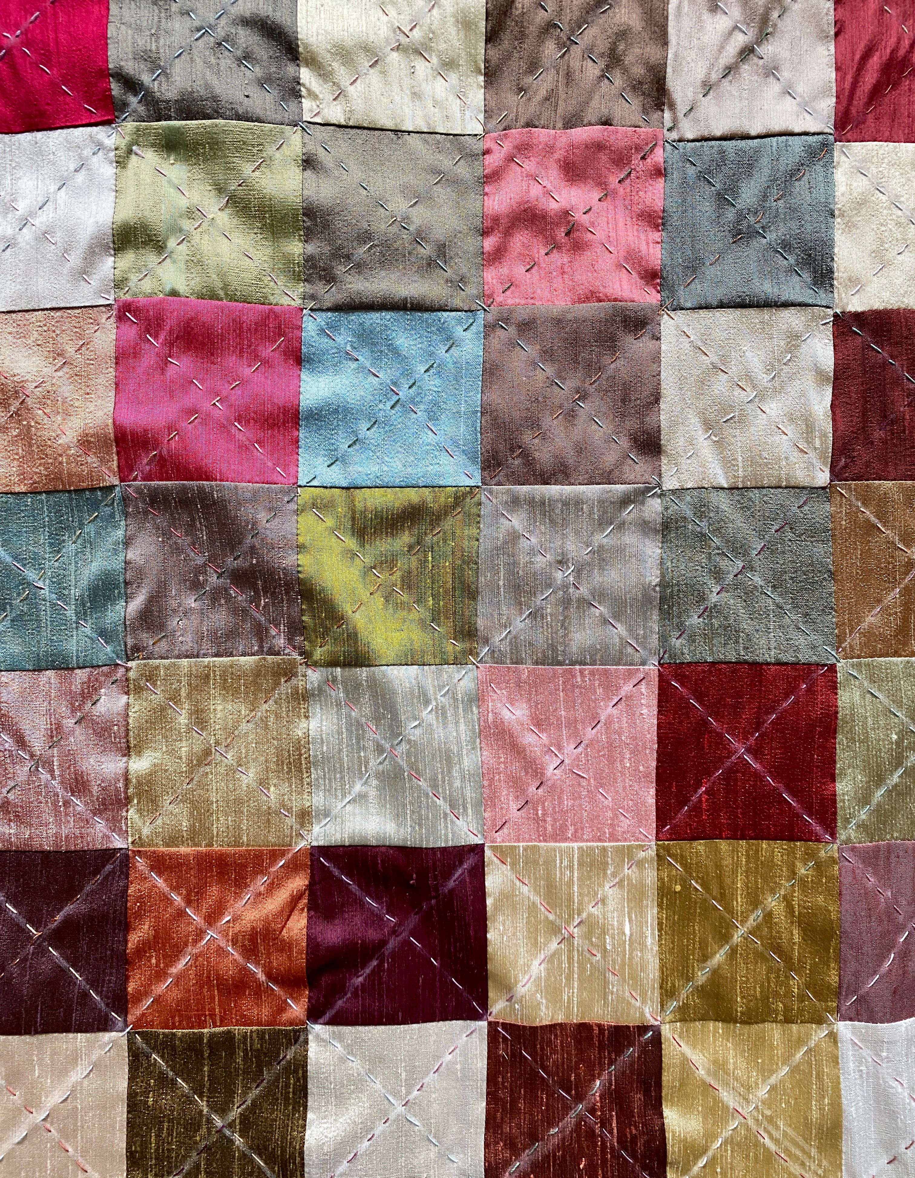 I also cut up a silk furnishing fabric sample book I’d been given to make a patchwork cushion cover stitched with silk threads (above - annoyingly, tailor’s chalk seems to cling to silk 😡).