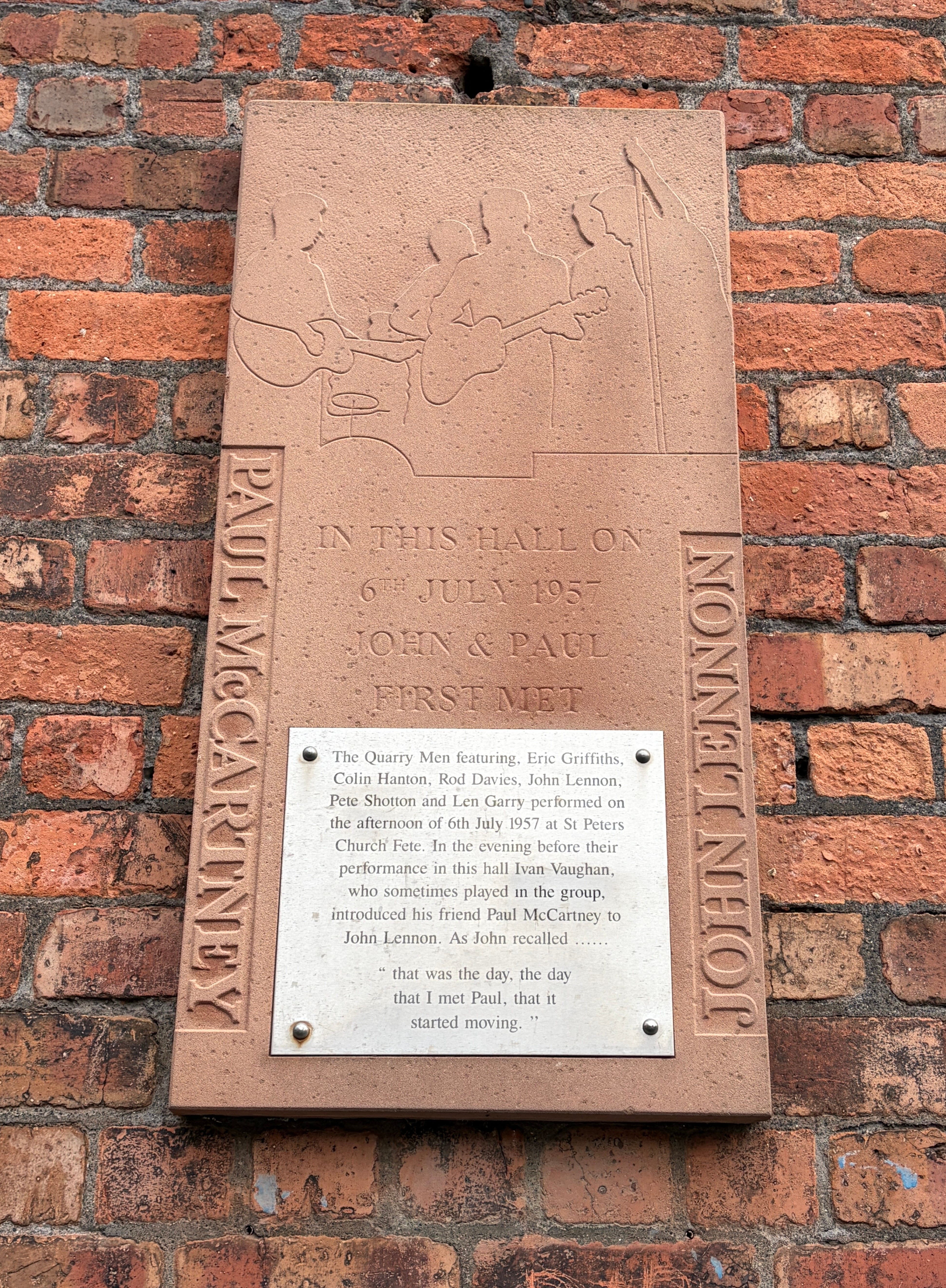 But these two songs encapsulate so much of their early lives that much more would have been superfluous. They were suburban boys, hopping on and off buses all the time, changing at the terminus with the shelter on the roundabout, criss-crossing Liverpool to get to the Liverpool Institute, Lime Street Station, the Cavern, the Mersey Beat offices, Ye Cracke, the Philharmonic Dining Rooms, the School of Art, Gambier Terrace, the Anglican Cathedral, the Casbah in West Derby, and taking the ferry across the Mersey. Every single one of which we saw, apart from the last which now a morning and evening commuter service only. We drove down Penny Lane, past the Strawberry Field gates, and I jumped out to look at what was Quarry Bank School (now Calderstones School) where John went and rebelled. It was also important to see Dovedale Primary School (John and George plus contemporaries Jimmy Tarbuck and Peter Sissons), Woolton village (John and friends) and St Peter’s Church,