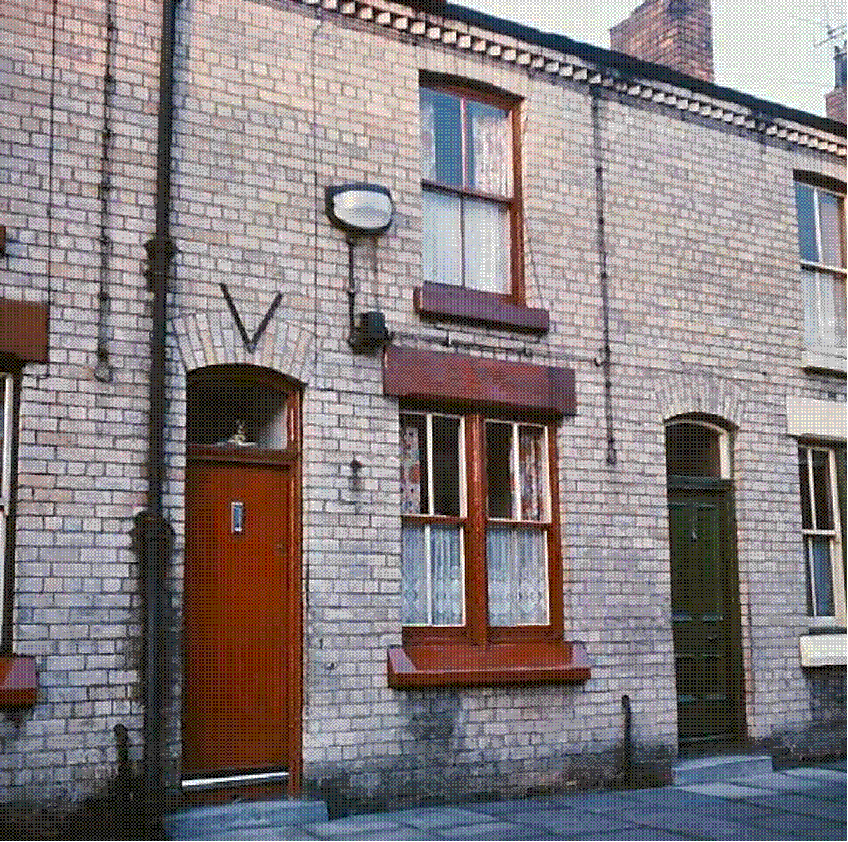 [now: 10 Admiral Grove, L8, Ringo Starr’s childhood home, with V for Victory above the front door]
